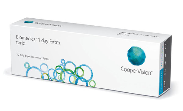 Biomedics 1 Day Extra Toric jsou denní kontaktní čočky s korekcí astigmatismu od firmy CooperVision, jedné z největších firem, která vyrábí kontaktní čočky.