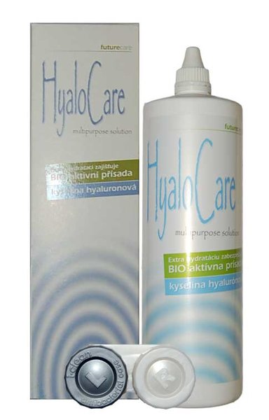HyaloCare - roztok na všechny typy měkkých kontaktních čoček. Obsahuje kyselinu hyaluronovou, která se používá, pro svou vysokou schopnost hydratovat, v očních kapkách. Roztok HyaloCare je proto extra účinný pro uživatele čoček s citlivýma očima. Zpříjemňuje nošení měkkých čoček, kterým zároveň poskytuje maximální péči. Pro zvýšení účinnosti ničení bakterií je k roztoku přibalováno antibakteriální pouzdro.