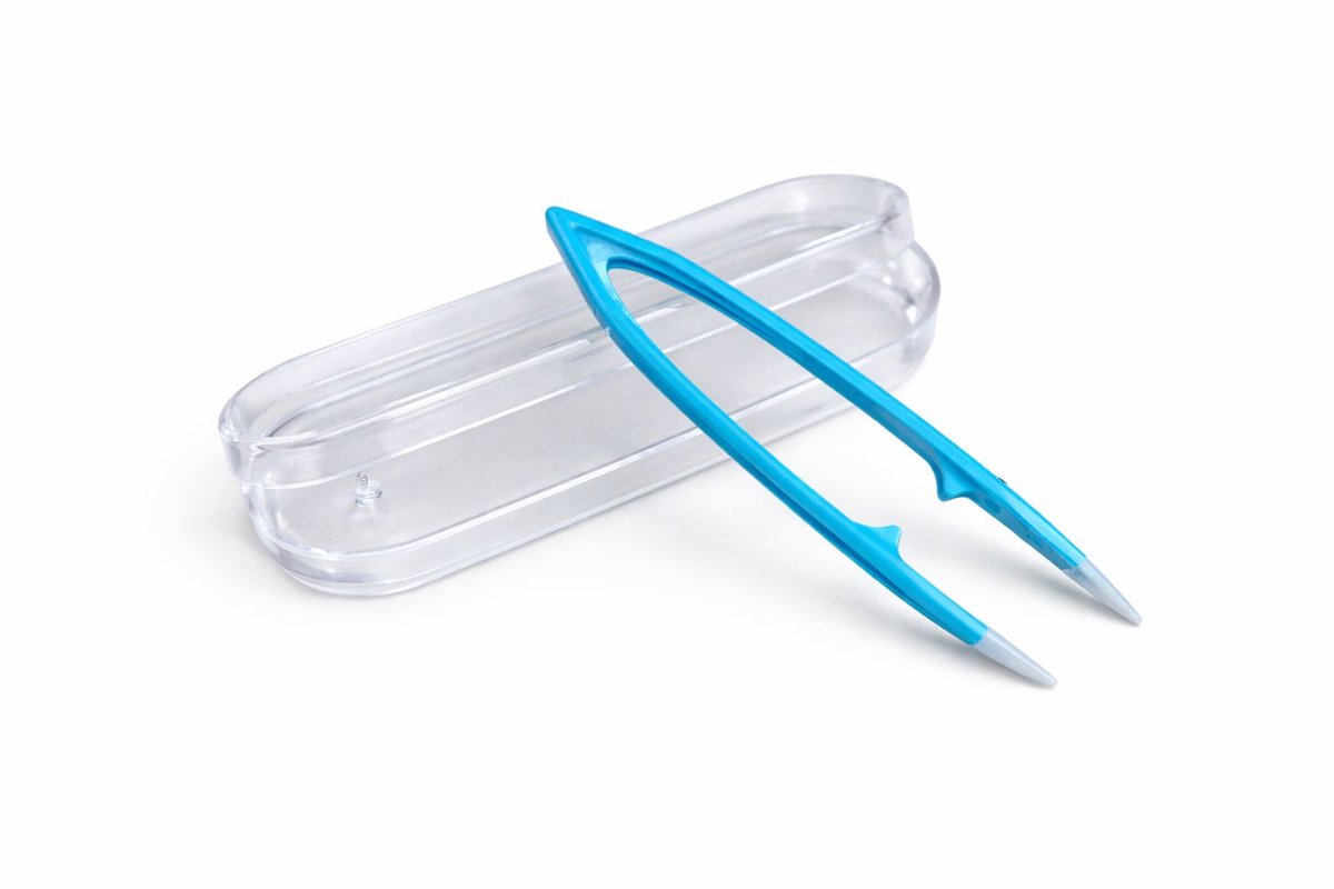 Pinzeta na kontaktní čočky v pouzdře, velká - modrá