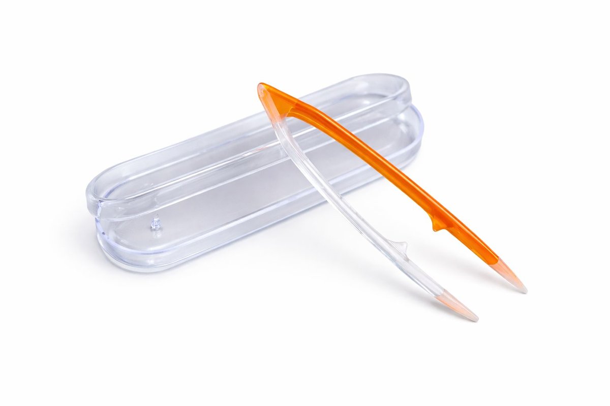 Pinzeta na kontaktní čočky v pouzdře, velká - oranžovo-transparentní