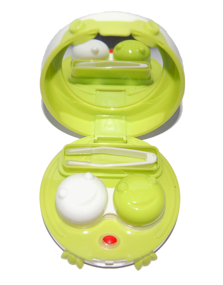 Pouzdro vibrační kulaté s nožičkami - vibrace se postarají o dokonalou čistotu vašich čoček. Tato pouzdra obsahují zrcátko, vnitřní plastové pouzdro na kontaktní čočky ve stejné barvě pouzdra a pinzetku. Baterie AAA není součástí balení.
